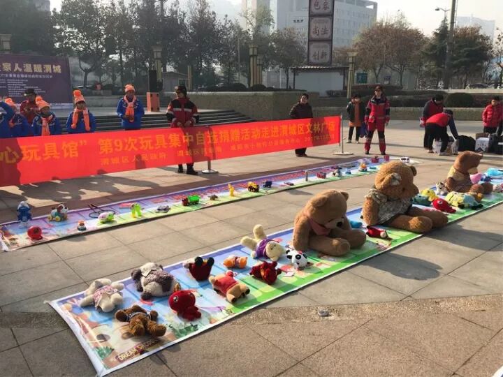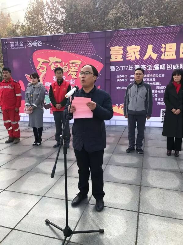 当天上午,由渭城区脱贫攻坚领导小组办公室主办,渭城区民政局、渭城区曙光救援队承办的“壹家人温暖渭城”温暖包发放仪式及小桔灯“暖心玩具馆”第九次玩具自选捐赠活动在广场上举行。