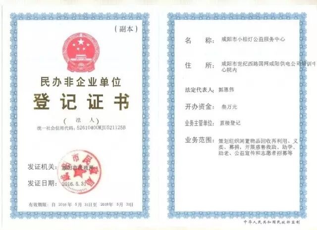 咸阳市小桔灯公益服务中心是在咸阳市民政局登记注册的非营利性民办公益慈善组织。